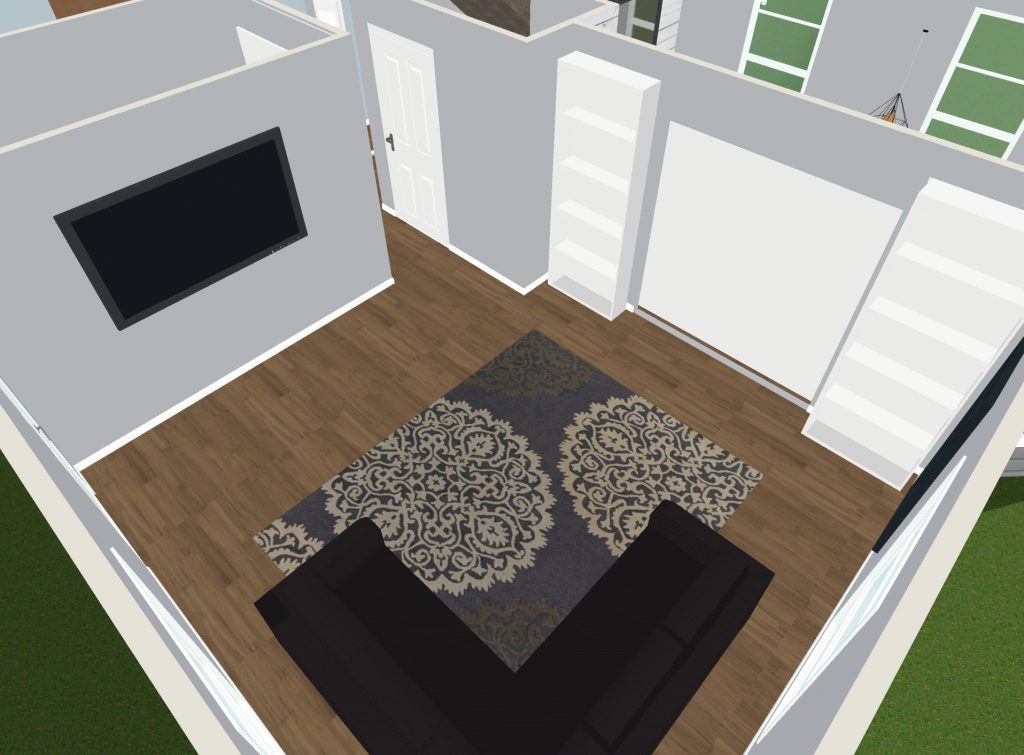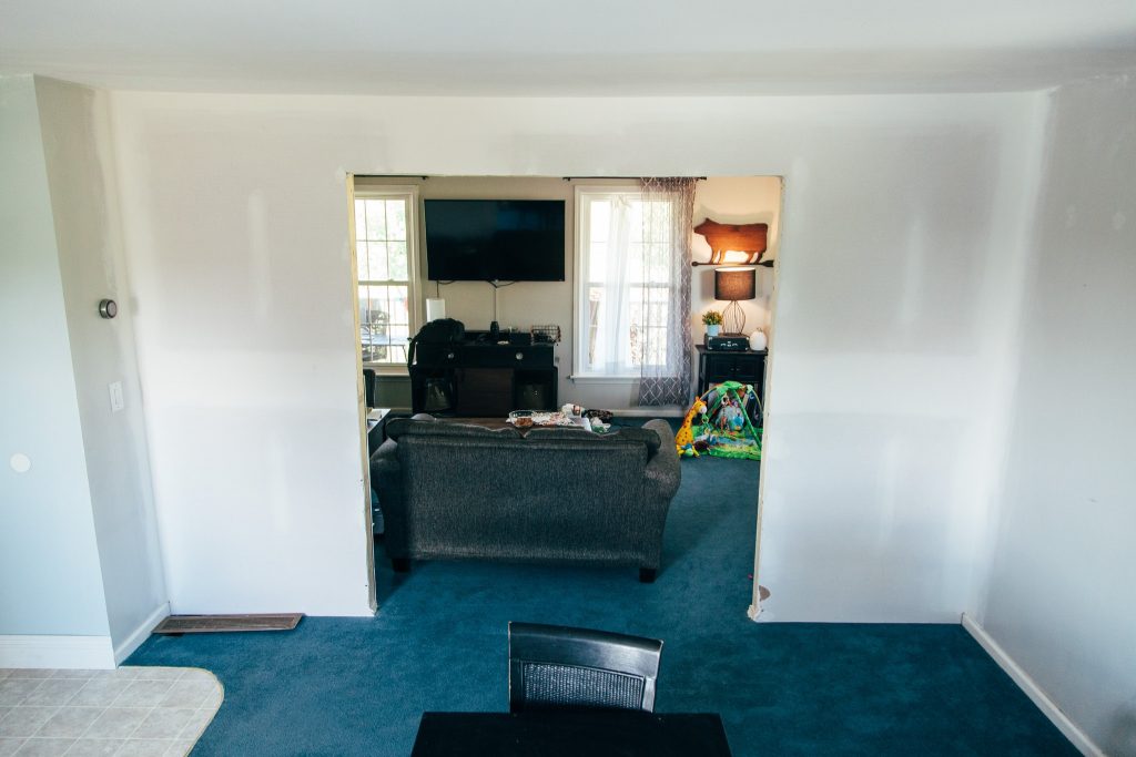 So we asked them to tear down the wall between the dining room and the kitchen in order to create a larger conversation-centric gathering space (our new living room/kitchen area), and erect a wall to split up the old living room into a new dining room and a more relaxed, entertainment-centric gathering space (our new den).