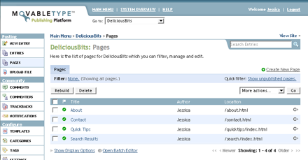 UPDATE: This plugin is actually called Athena and isn’t a plugin at all. Single page management will be a core functionality of Movable Type 4.0!